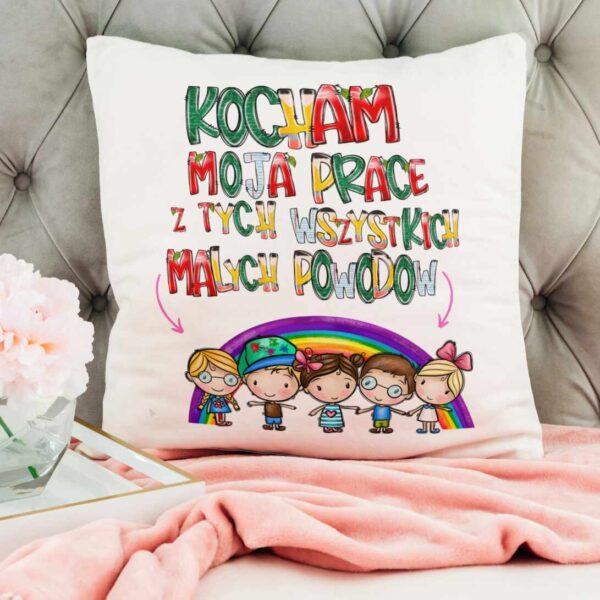 Poduszka na Dzień Nauczyciela, „Kocham moją pracę z tych wszystkich małych powodów”