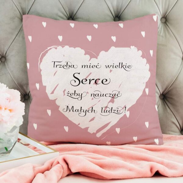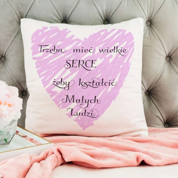 Poduszka na Dzień Nauczyciela „Trzeba mieć wielkie serce żeby uczyć małych ludzi”