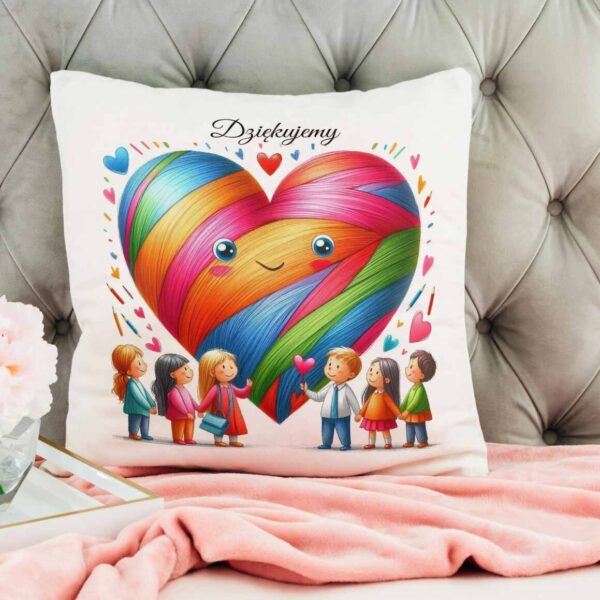 Poduszka na Dzień Nauczyciela serce, uczniowie, napis „Dziękujemy”