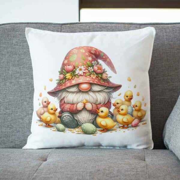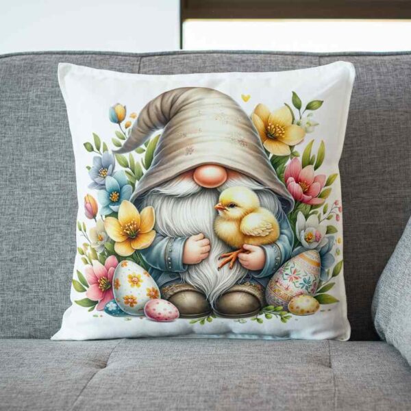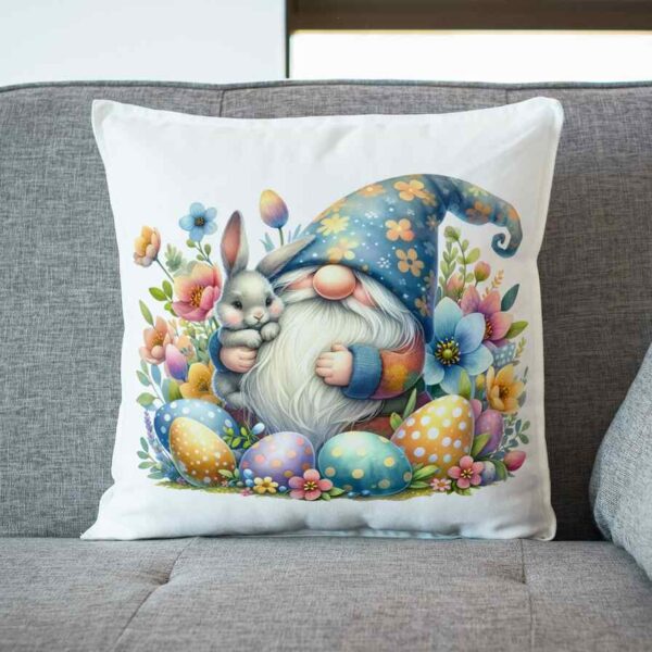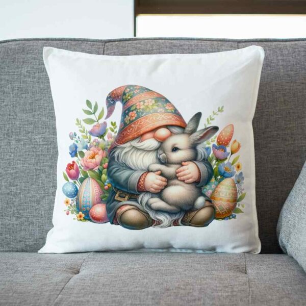 Poduszka Gnom w kwiatach z pisankami i królikiem 2